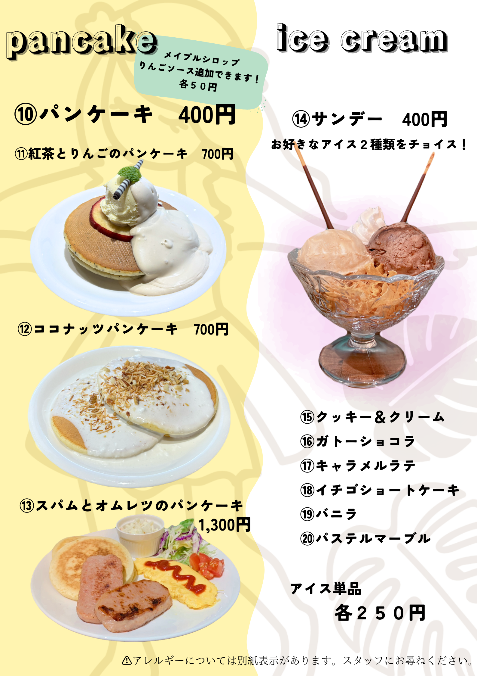 新しいドリンクが加わりました!ちょっと遅れた夏のパンケーキも(; ・`д・´) かき氷もリニューアルして登場(*'ω'*) |